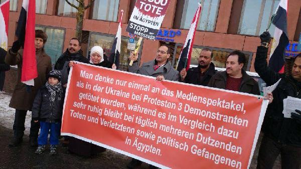 وطالب المشاركون في الوقفة الإعلام الألماني بوجه عام عرض ما يجري في مصر من قتل واعتقال للنشطاء والسياسيين والبنات ، كما كانوا ينقلون ما يجري في أوكرانيا، على الرغم من كثرة عدد القتلى والجرحي والمعتقلين في مصر مقارنة بأوكرانيا.